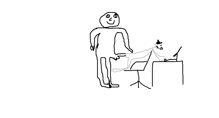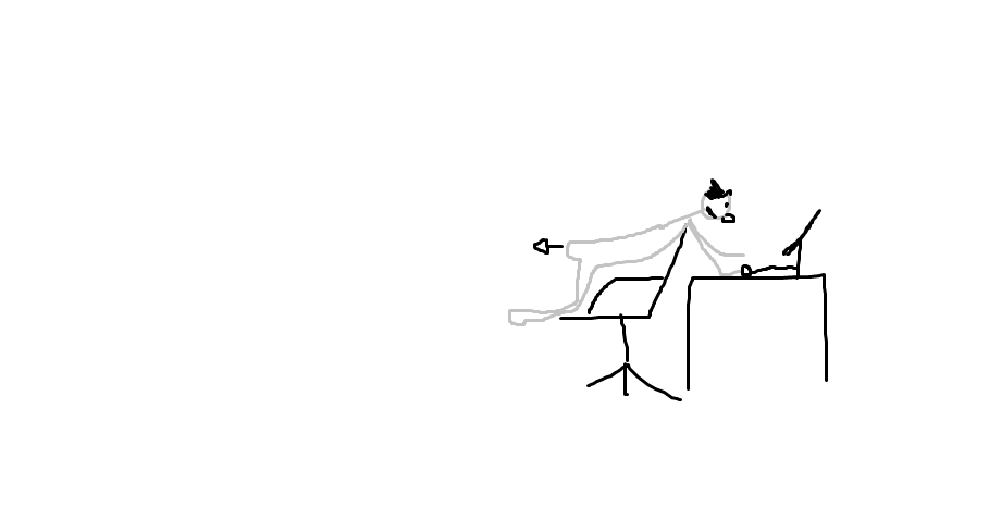 oh putain quand j'avais un bureau avec ma putain de chaise je me mettais comme ca et effectivement j'avais envie de... chier