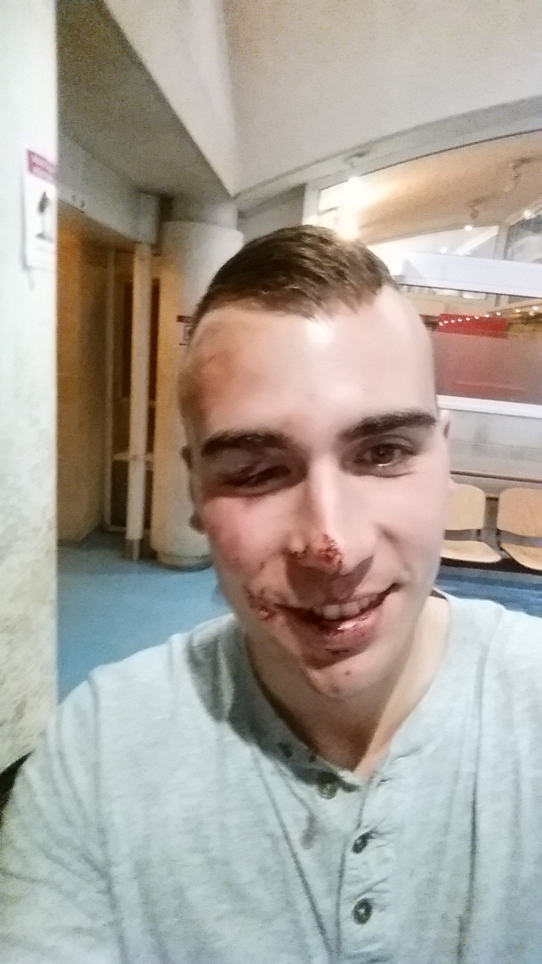 Hier je me suis battu et j'ai fini aux urgences. Résultats : 5 agrafes au crâne, 7points de sutures à la jugale droite et 3 même endroit mais à l’intérieur.