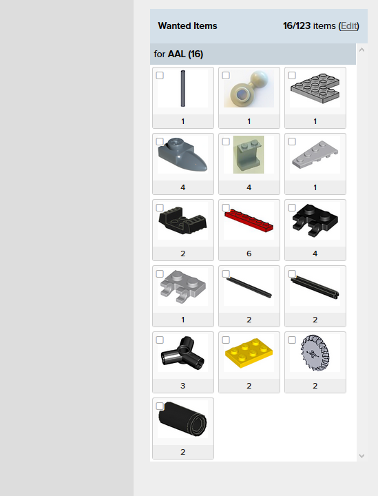 D'ailleurs certains d'entre vous vendent des pièces ? Je galère minimiser le coût de mon First Order Transporter à cause de certaines pièces un peu rares (et du minimum d'achat requis chez certains vendeurs)