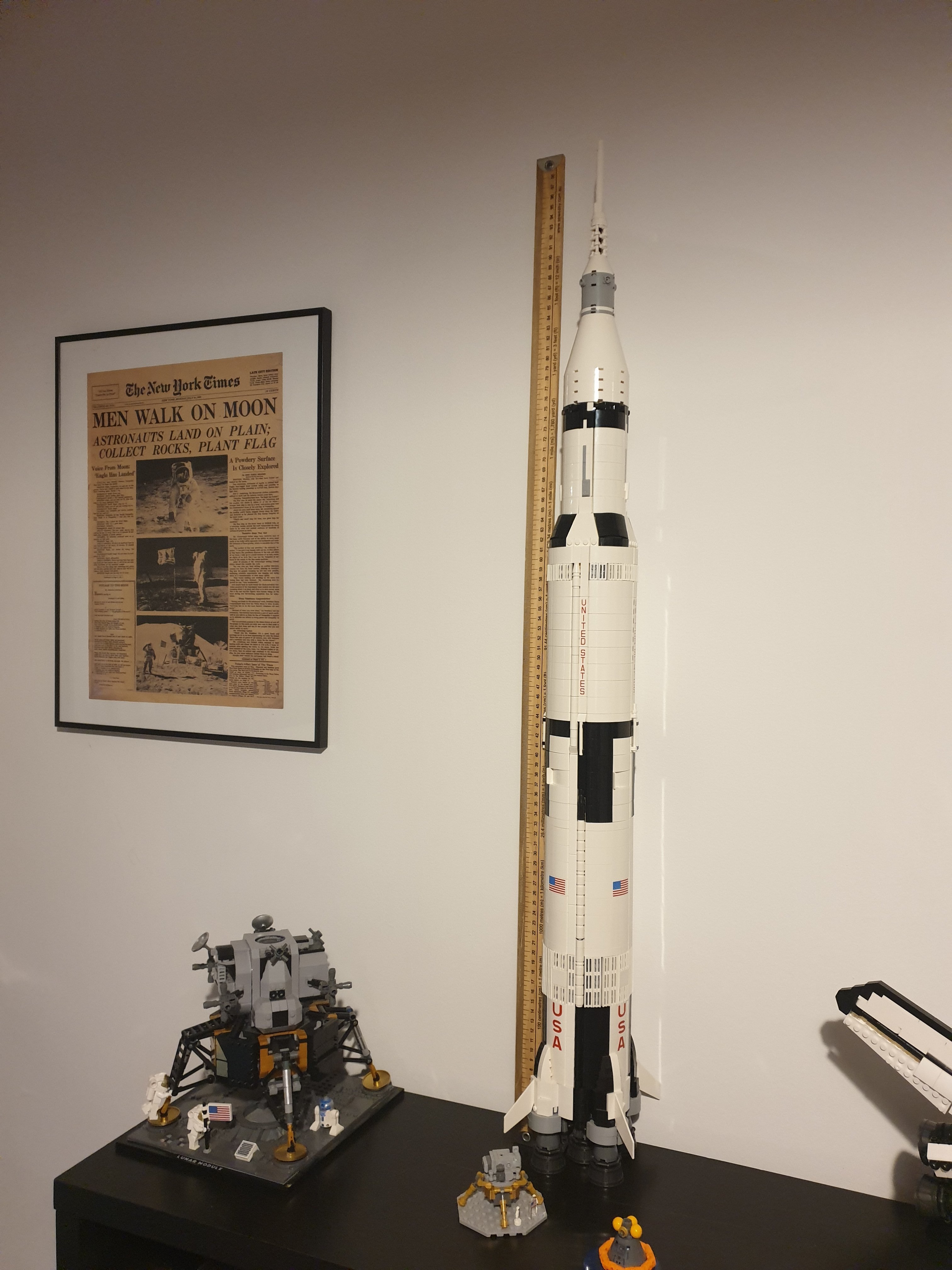 Est-ce que l'un d'entre-vous à la fusée Apollo Saturn V 92176 ? Je l'ai mais encore dans sa boite et j'aimerais savoir combien elle mesure précisément en hauteur ? Je suis en train de faire des boites en plexiglass pour protéger la collection NASA et il me faut les tailles, la 92176 c'est la seule qui n'est pas indiqué sur le site LEGO