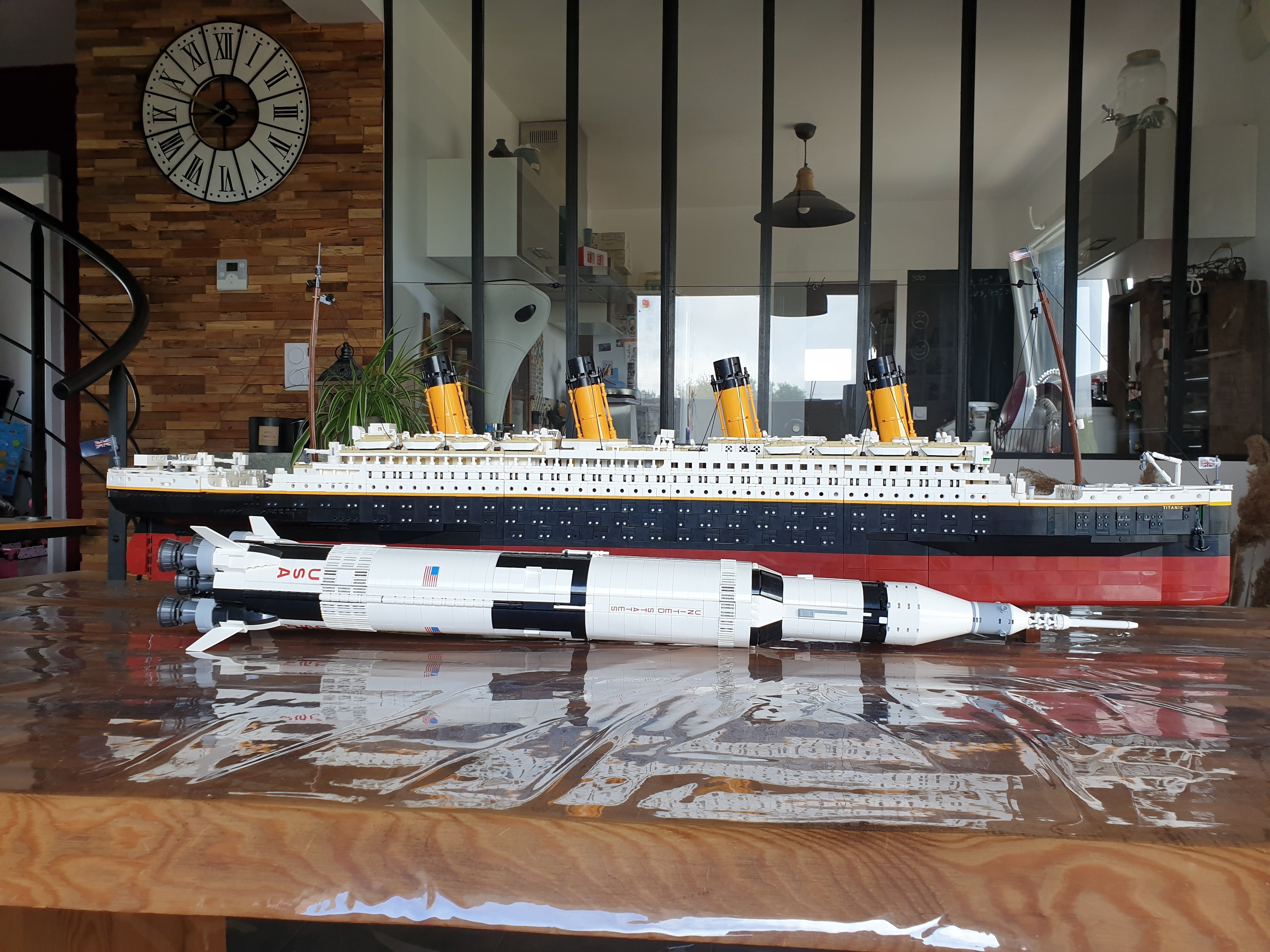 Non aucun sticker pour la Saturn V, tout est directement imprimé sur les briques.