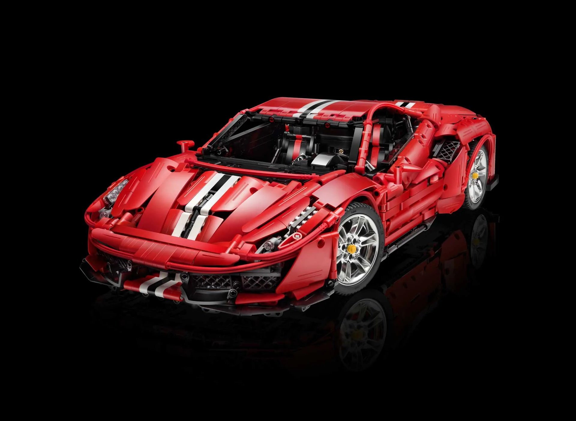 Je n'ai acheté qu'un seul set non-officiel, c'est la "Italian Supercar" de CaDA (qui est en fait une 488 Pista mais sans licence) : je l'ai fait car c'est un modèle vraiment joli, complexe (3200 pièces) et entièrement motorisé : propulsion, direction et même boîte de vitesse séquentielle ! Et des modèles comme ça, Lego n'en fait pas...