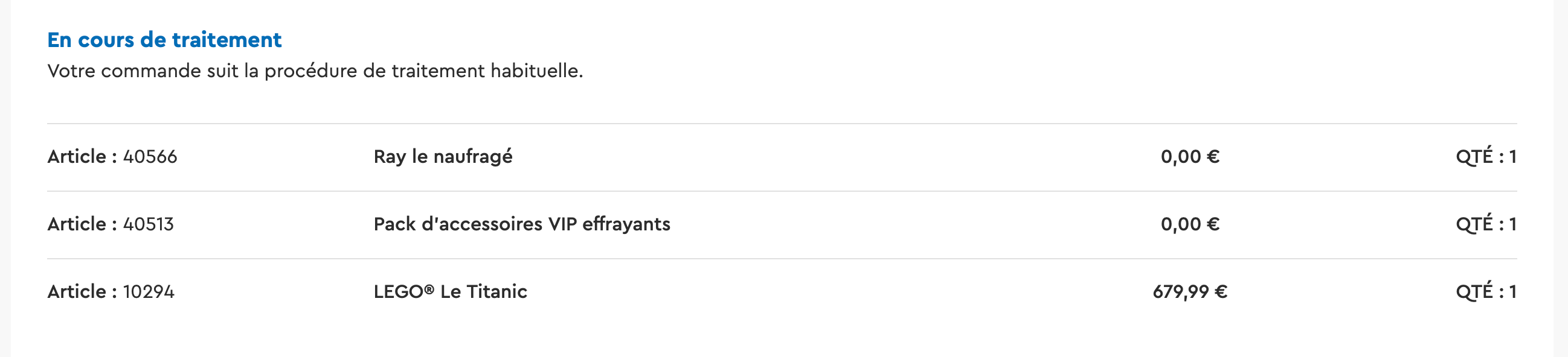 J'étais parti pour prendre le Razor Crest mais le restock du Titanic me fait hésiter