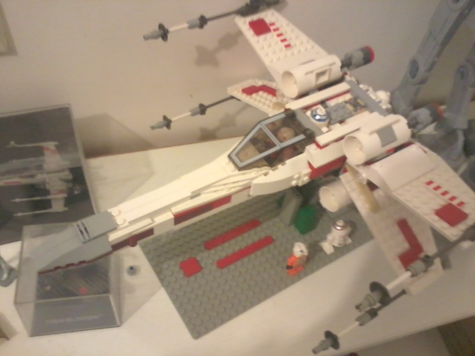 Le X-wing comme indiqué il s'agit du 4502, que j'ai reconstruit en fouillant mes tirroirs légo, il manquait des pieces, et je me suis inspiré du 9493. J'ai donc: