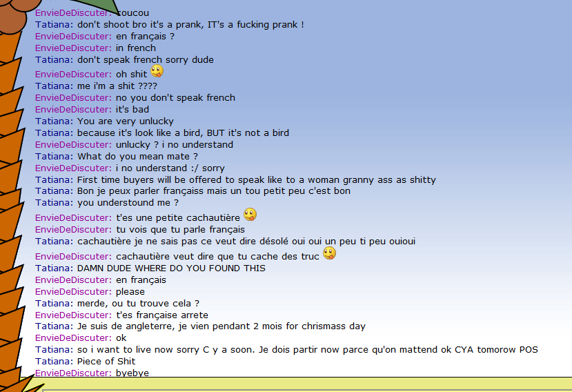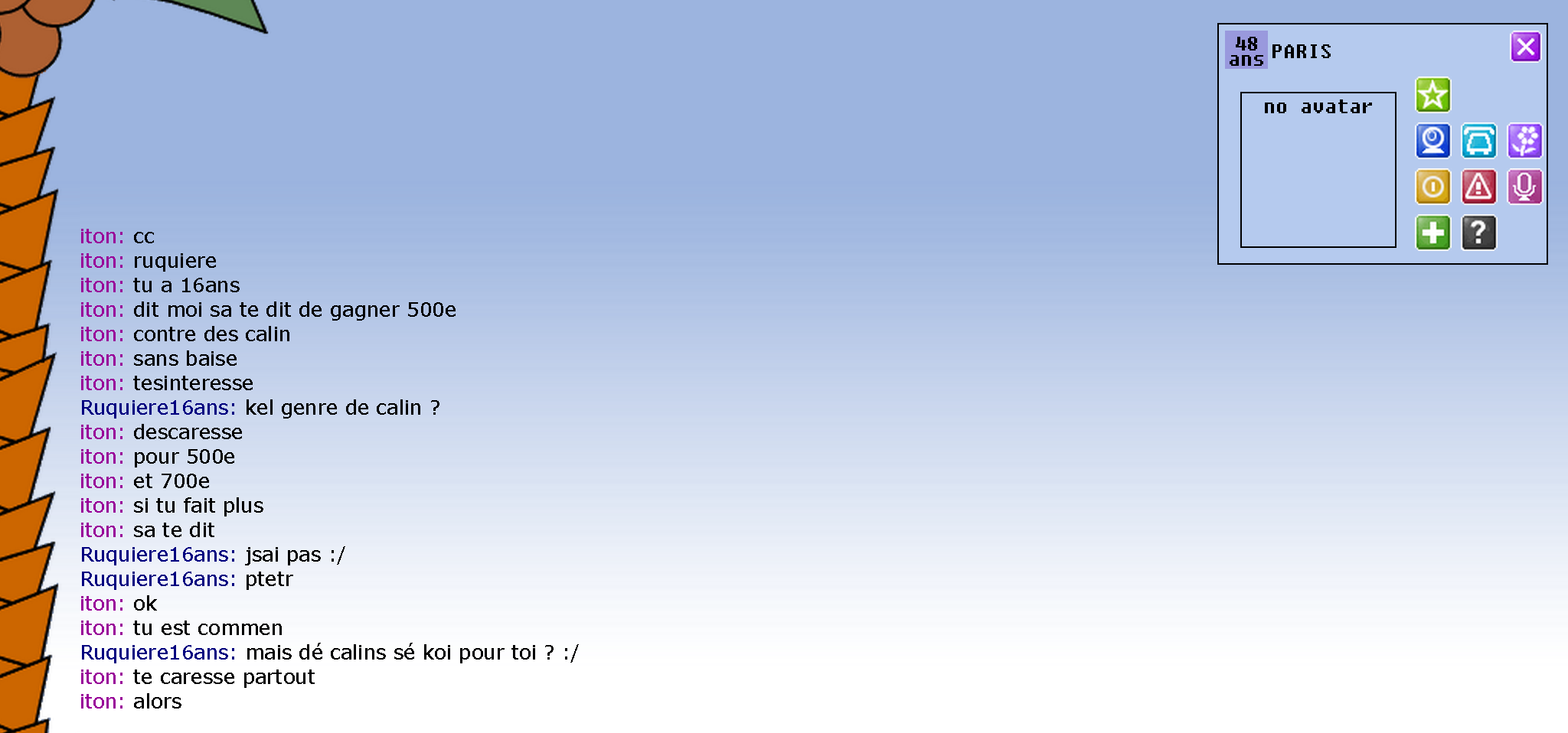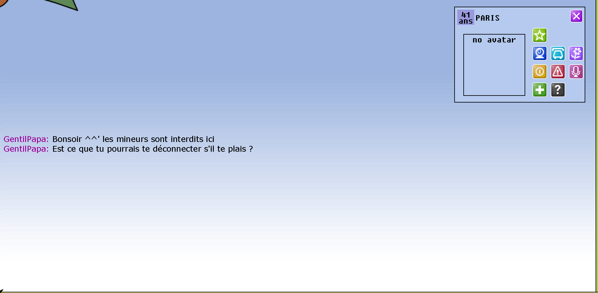 Mdr ce shlag moi aussi il est venu me casser les couilles j'ai fais ok je quitte et jlai bloquéEssaye de voir si c'est un pédo en vrai