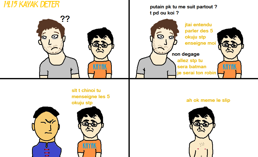 je ne suis pas du tout comme kayak boy. moi je ne mets pas de slip je mets des caleçon. et en plus je suis narcissique je ne dirais jamais a quelq'un que il est mon batman et que je suis son robin
