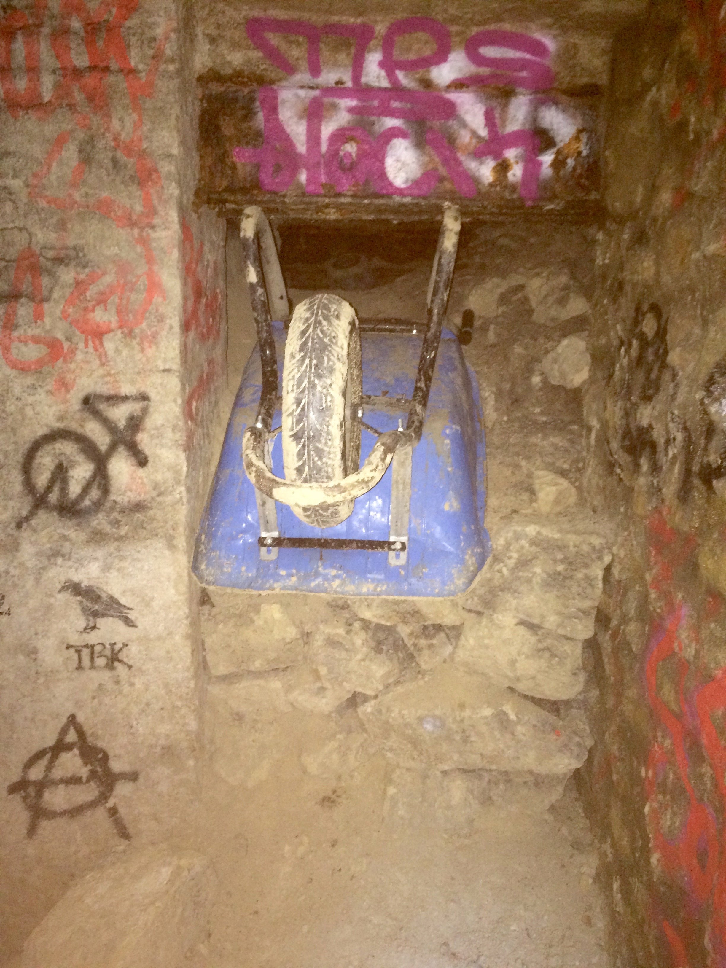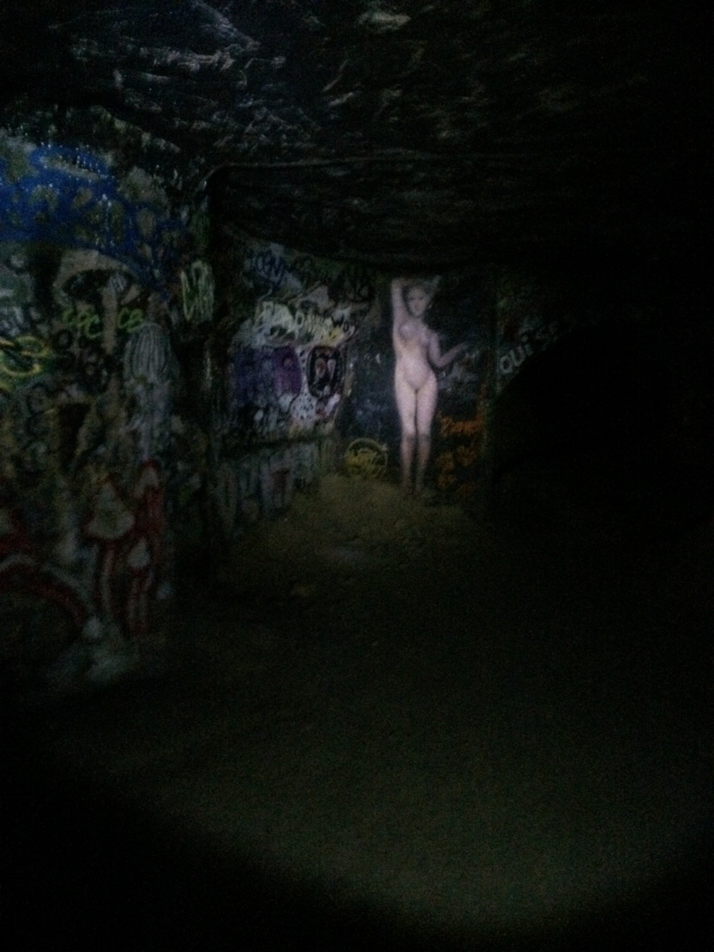 Nous avons croisé d'autres cataphiles, certains endroits ont été bourrés de fumigènes si bien qu'on ne voyait pas à 10 mètres, côté flotte : par endroits ça montait jusqu'au genoux !, on a du ramper parfois (bon ça va c'est pas mortel non plus