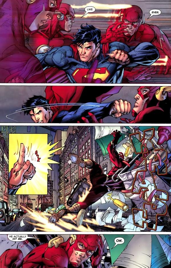 Ca change tout petit fanboy, Flash n'est pas capable d'esquiver un Superman même pas sérieux qui se bat avec un seul doigt quand Quicksilver met tout le Marvelverse en PLS
