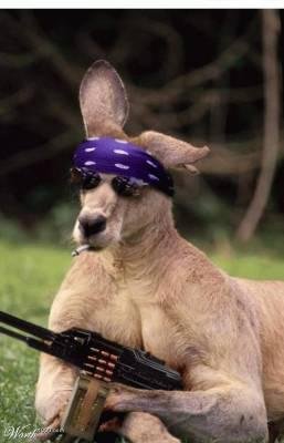 ENVERMEU : Un kangourou en cavale, poursuivi par les gendarmes !si vous croisez ce kangourou, n'essayez pas de le maitriser ou de l'arrêter, cet individu est dangereux et sous le coup de plusieurs mandats d'arrêts...