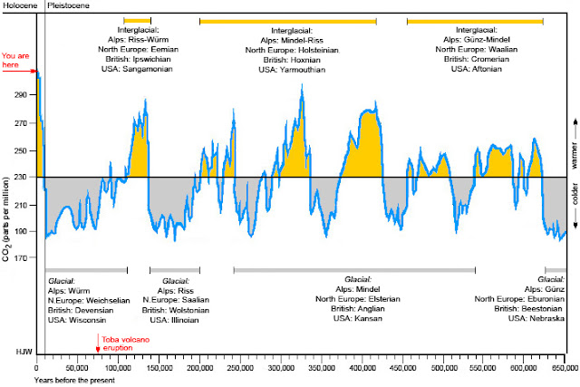 Et nous, nous sommes en fin de grosse période glaciaire (quand je parle de fin de période, je parle de la période glaciaire qui avait touchée les hommes préhistoriques permettant le passage de l'Asie à l'Amérique) donc dans tous les cas il va y avoir un réchauffement climatique très important sur une durée extrêmement longue avec ou sans homme.