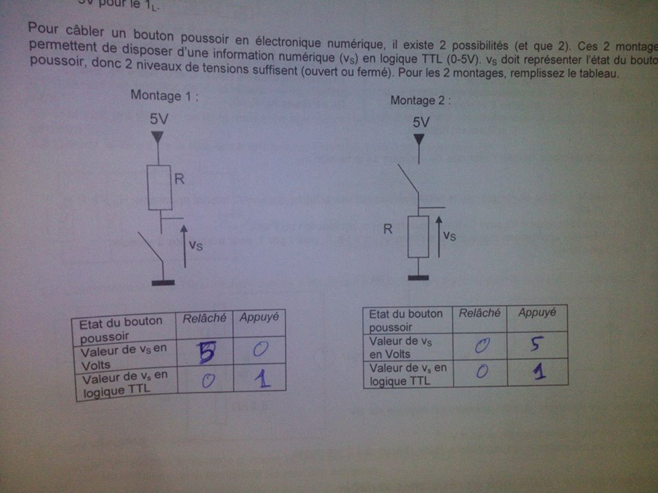 Pour le montage 2, elle reçoit 5V si j'appuie sur le boutonJ'ai bien compris ou pas ?