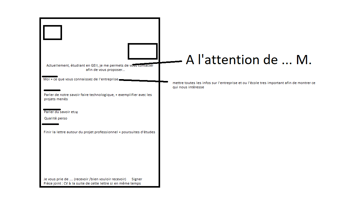 En face du nom à droite de la feuille c'est "ville" virgule "le" et la date, tu sautes une/quelques lignes
