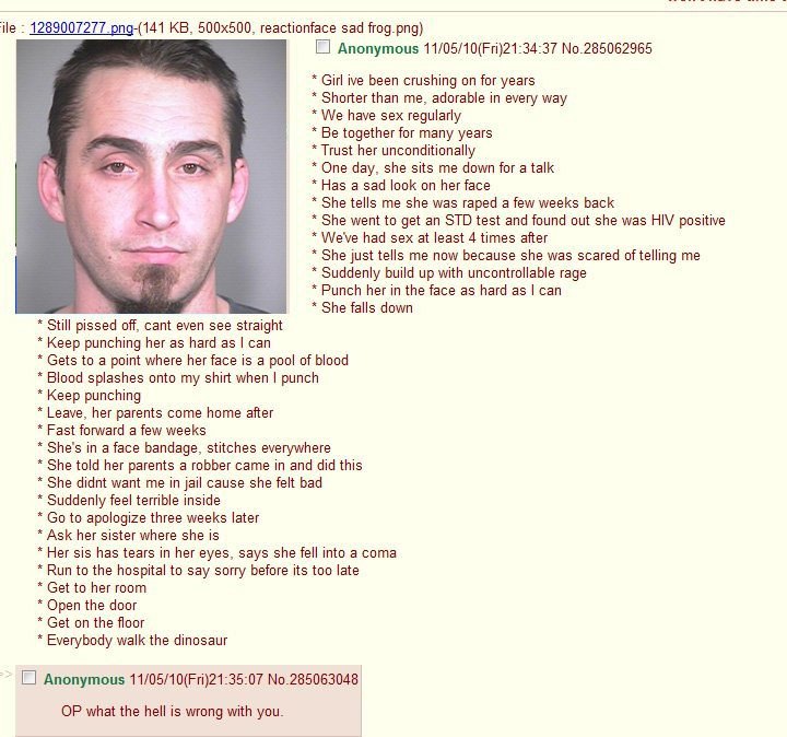 Je vous traduit une histoire de ce topic 4chan http://boards.4chan.org/b/thread/663540728