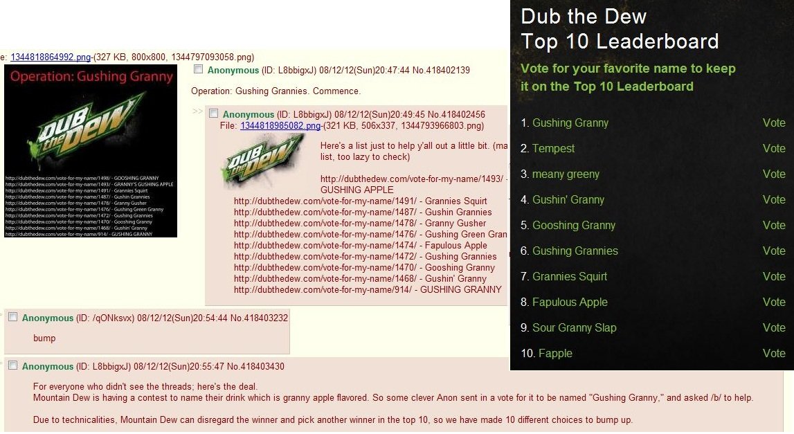 ou la fameuse fois ou ils avaient reussit non seulement à placer moot en 1ere place du top 100 des personnalités les plus influentes de time magazine, mais en plus à classer tout le monde de facon à avoir un message caché (pour ceux qui ne connaissent pas, je vous laisse chercher la definition de marblecake, indice: oui c'est bien un gateau, mais pas que)