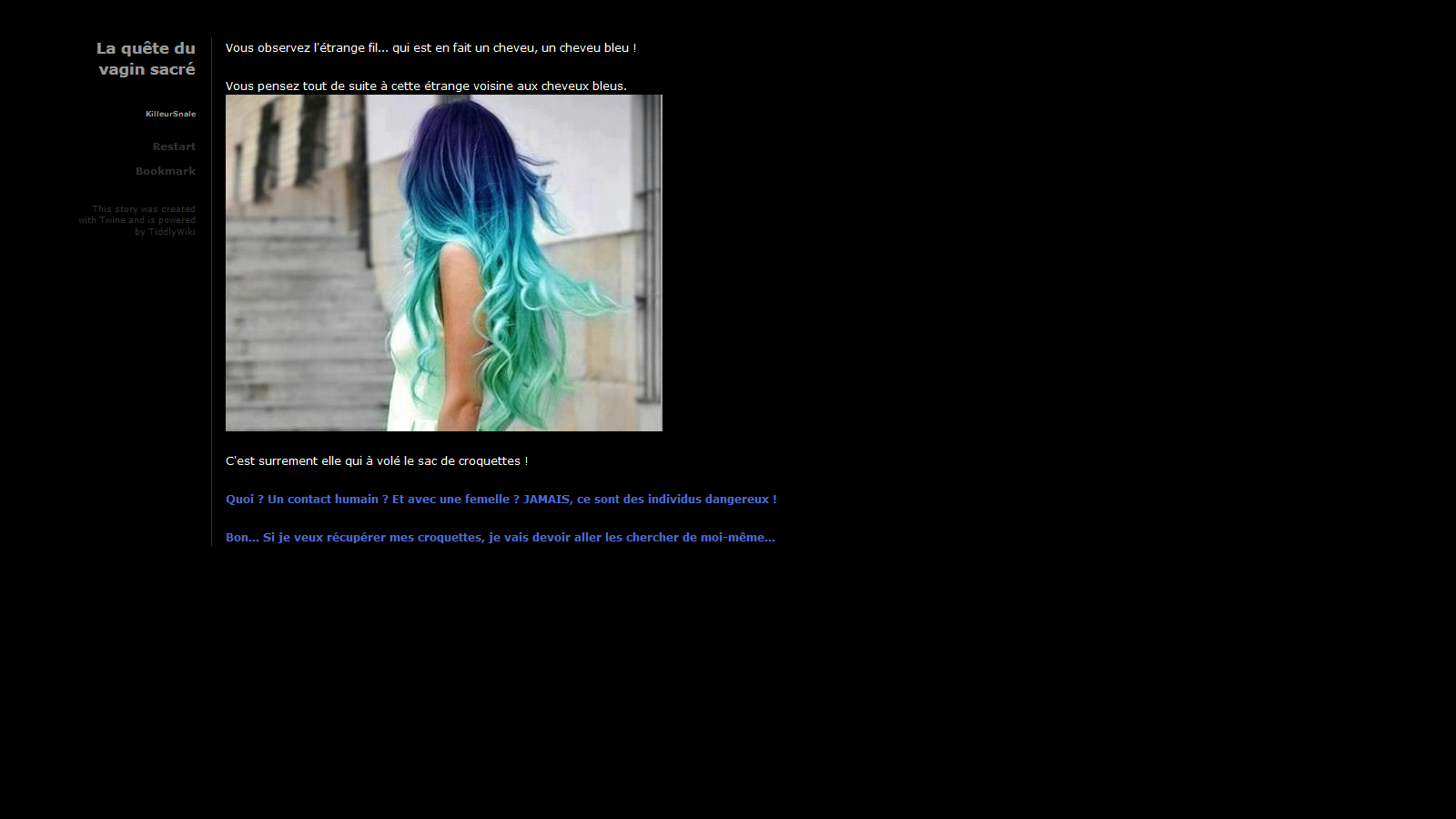 Le jeu est un jeu textuel (avec meme des images, sisi) ou vous faites simplement vos choix en cliquant sur celui qui convient.