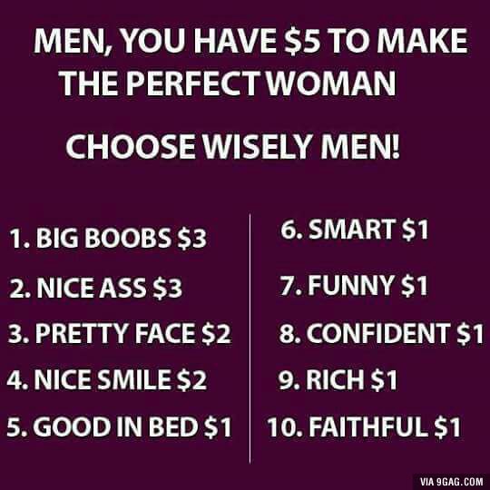 Vous avez 5 dollars, que choisissez vous pour construire la meilleure femme possible: