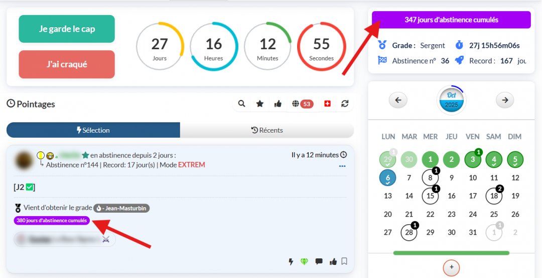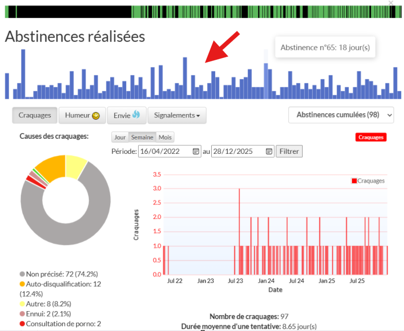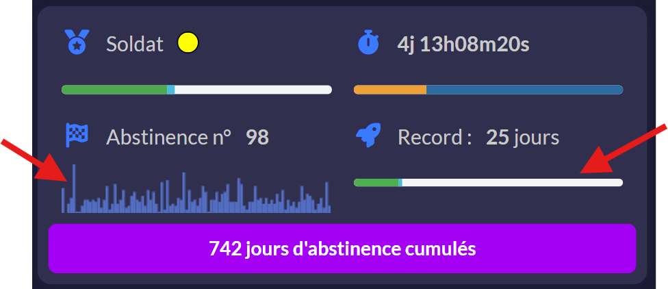 Le graph des abstinences réalisées est aussi dispo sur l'écran principal de vos statistiques :