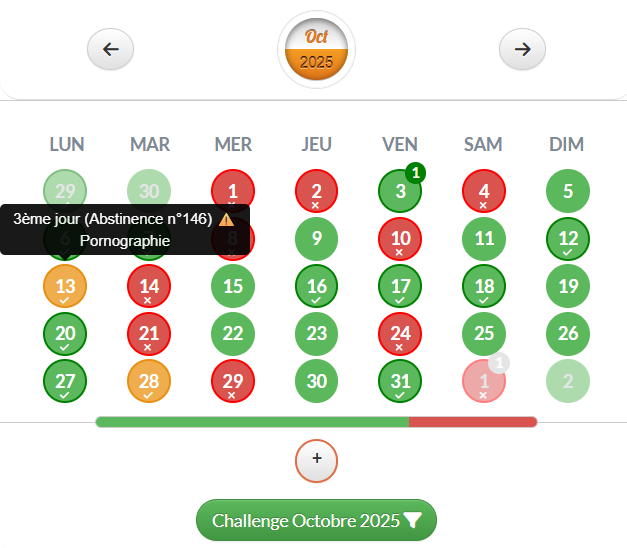 🆕 Nouvelle mise à jour du calendrier d'abstinence où apparaissent désormais en orange les journées où une consultation de pr*n a par exemple eu lieu :