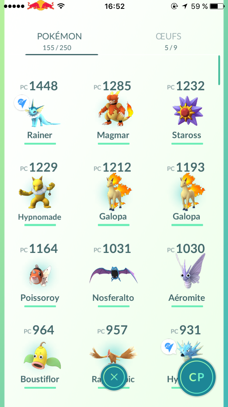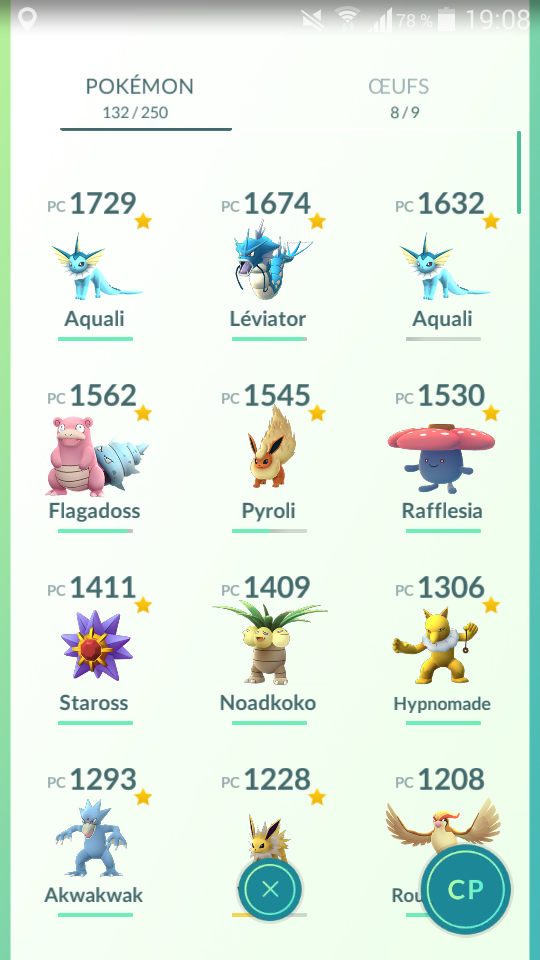 J'ai dégagé plusieurs Akwakwak, un Aquali, un Pyroli et 4 Voltalis, tous à plus de 1000 PC parce que IV soit bidons soit moveset pourris + j'aime pas trop les doublons ( mais maintenant je regrette