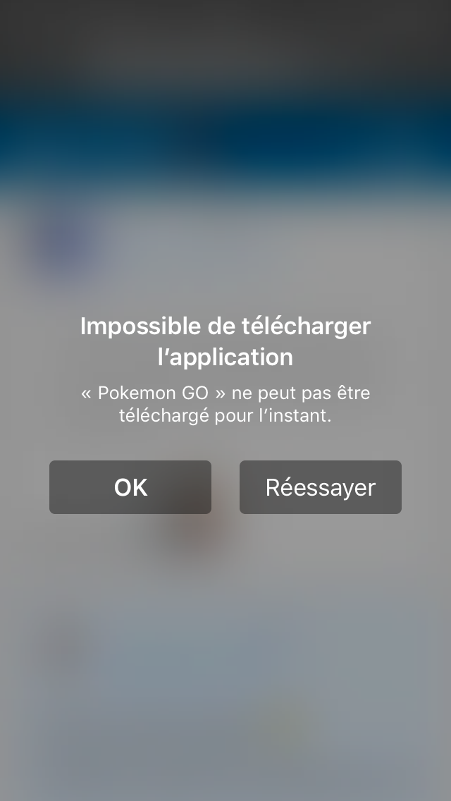 "Pokémon GO ne peut être téléchargé pour l'instant"