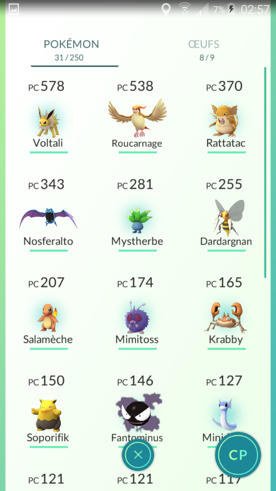 Du coup j'ai choisi de capturer Carapuce ( PC 115, pas mal )