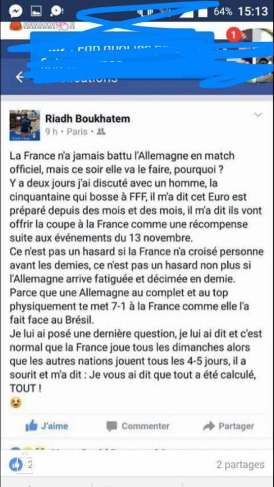 , il suffit d'aller voir les commentaires sur la page fb de l'euro. Les blédards suintent la rage. Sur les sites d'info belge même délire ... . C'était marrant au début mais la ça dévient limite malsain...