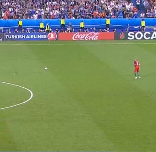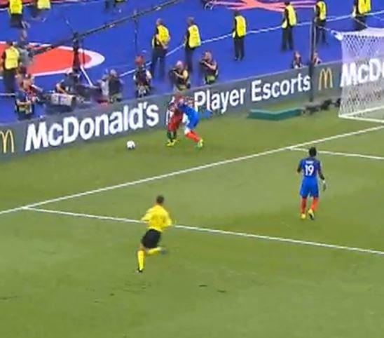 Pepe qui prend un élan "nécessaire" pour son coup de pied arreté, pas besoin de preciser qu'il l'a tiré en trottinant a la maniere de ZazaConclusion: Tout les complotix en PLS enfaite c'etait pas la France qui etait censé gagner mais le Portugual comme le montre si bien cette arbitre qui va surement acquérir une nouvelle villa sous peu.