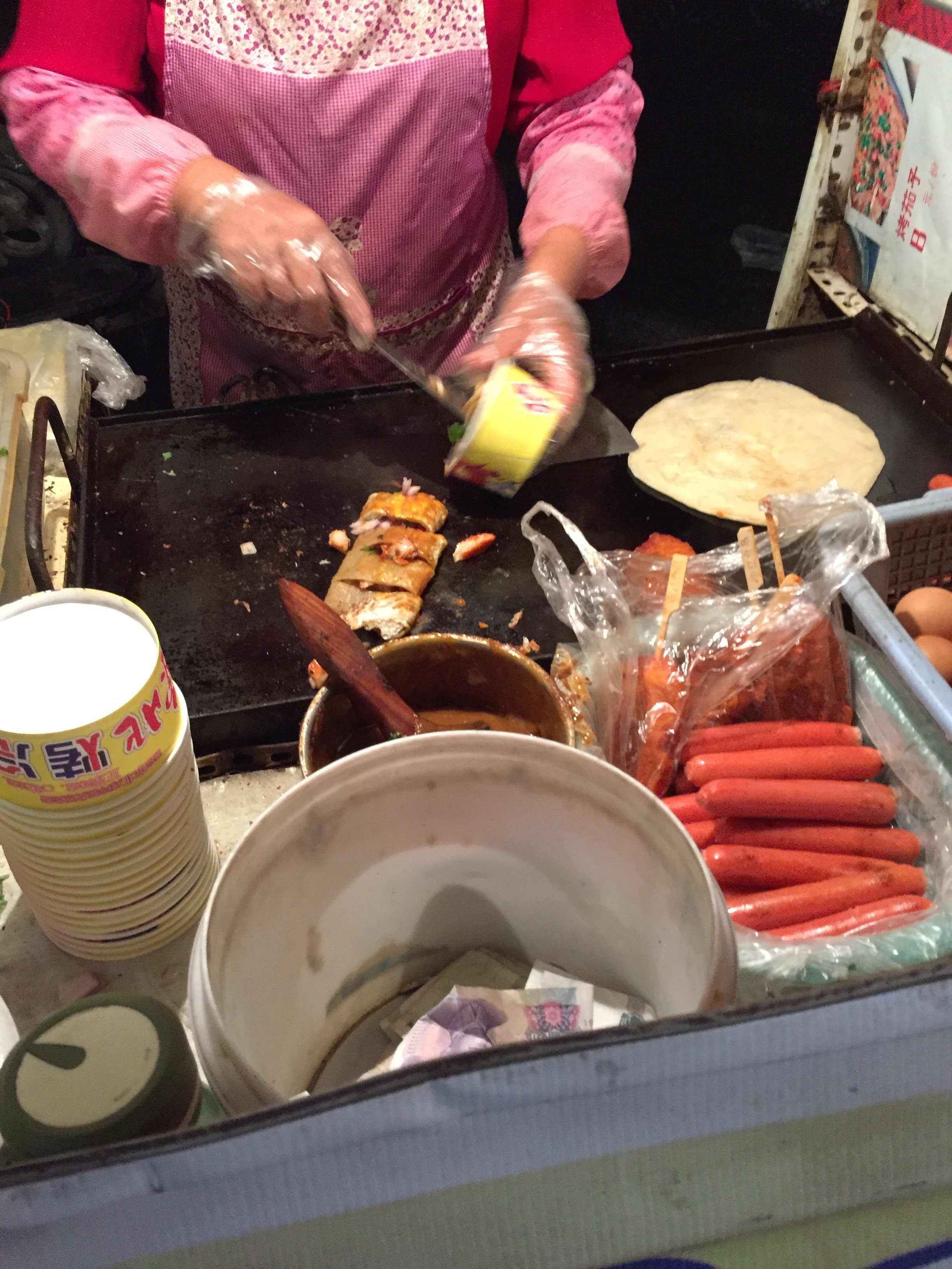 Elle m'a montré les choix (écrit sur la devanture et j'ai juste pointé au pif en disant 我要这个la sauce c'est genre vinaigre peut être