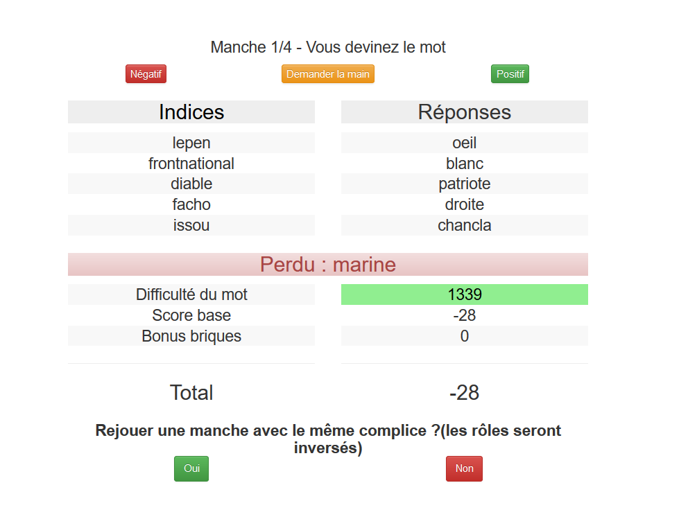 Le 20 août 2016 à 01:50:51 afterrush a écrit :Le 20 août 2016 à 01:45:37 AllStarCF a écrit :Je suis tombé sur un bon gars, 4 mots en une fois Les mots a trouver était crachat , chateau etc... ?