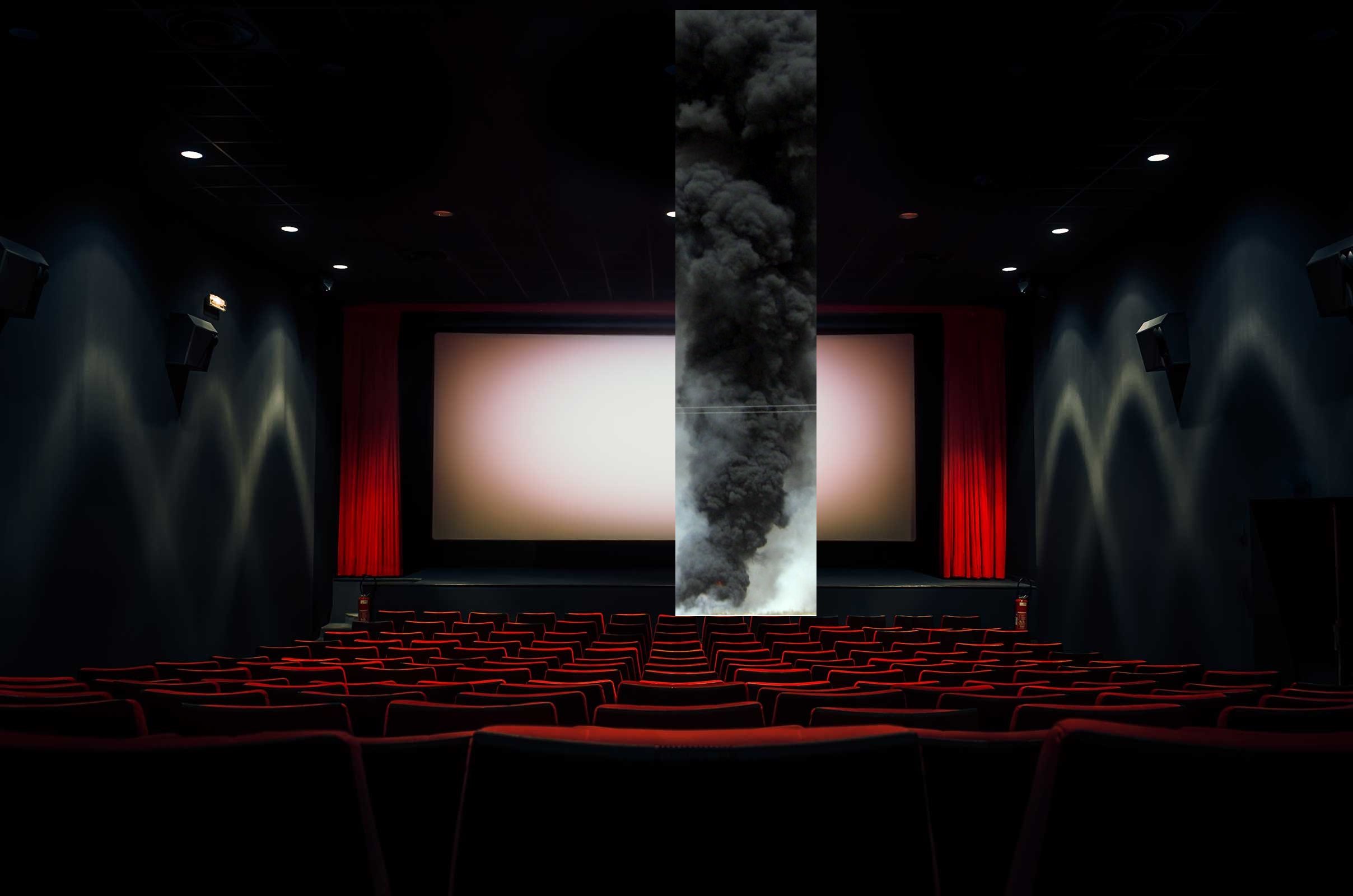 Les gens qui crisaient devant la colonne de fumée devant l'écran