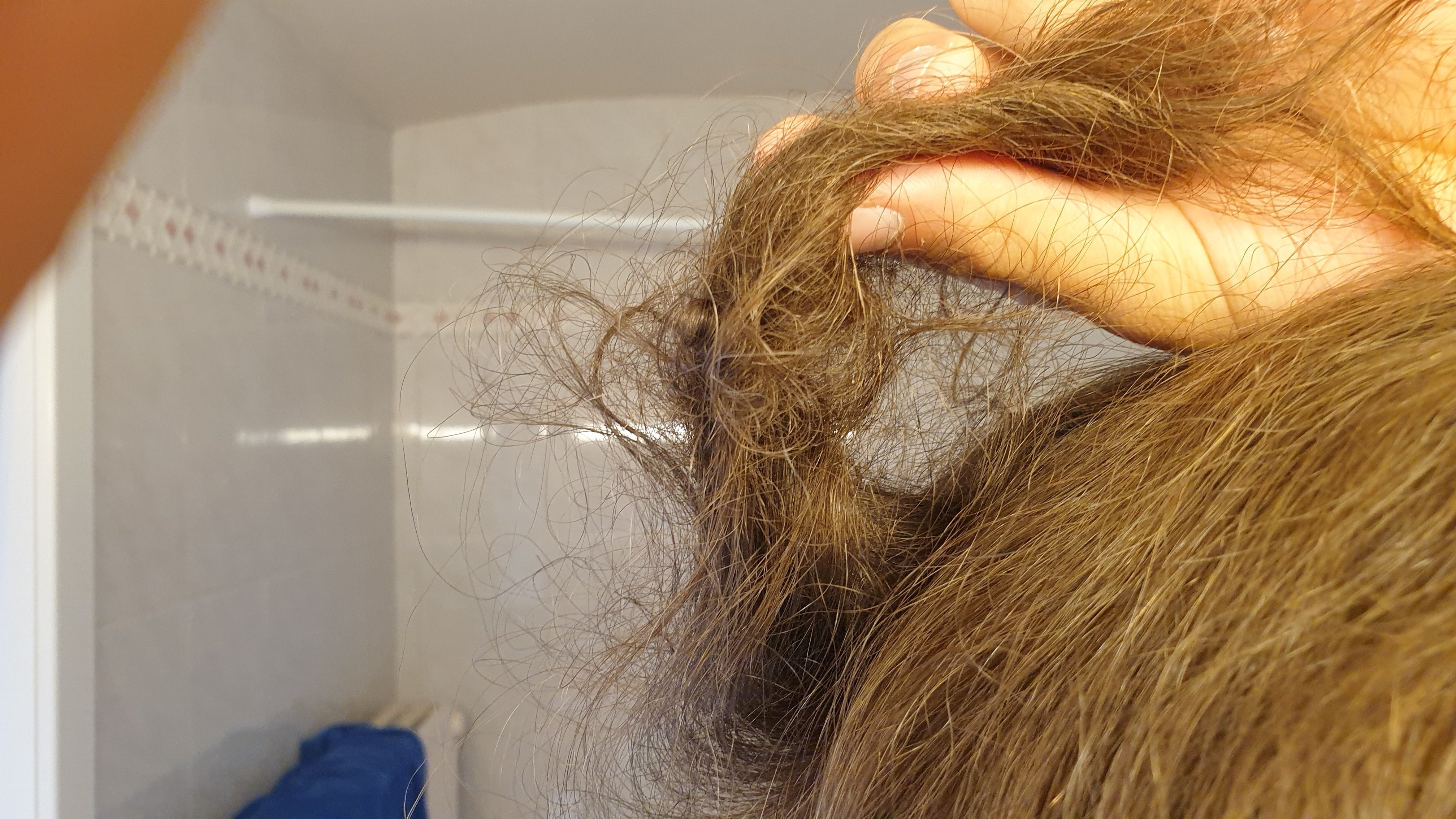 Nan mais ce que je veux dire c'est que là ça forme vraiment des amas, c'est pas juste 6-7 cheveux emmêlés entre eux c'est vraiment toute une mèche, genre je peux sentir le noeuds entre mes doigts et le peigne ne passe pas (après j'ai jamais essayé un peigne en poil), après peut être que t'as jamais eu ça j'avoue qu'avant il y a 3-4 semaines il me semble j'avais jamais vraiment eu ça non plus, je sais pas pourquoi c'est apparu de nulle part, j'ai les cheveux plutôt épais et légèrement bouclés
