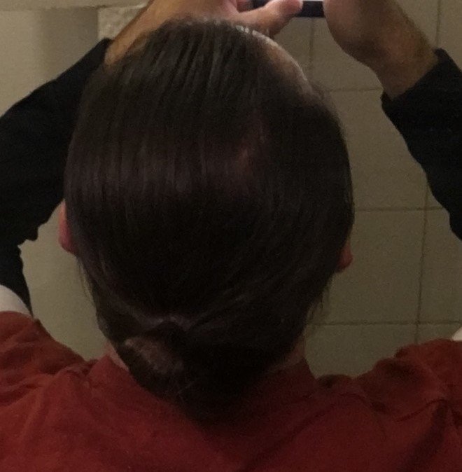 J'ai les golfs bien attaqué, et même si on le vois pas, le sommet du crane qui ce dégarnie, si ils sont détaché et bien coiffé, à ce vois pas mais si je les attaches, il m'est maintenant quasi impossible de pas laisser une zone clairsemé
