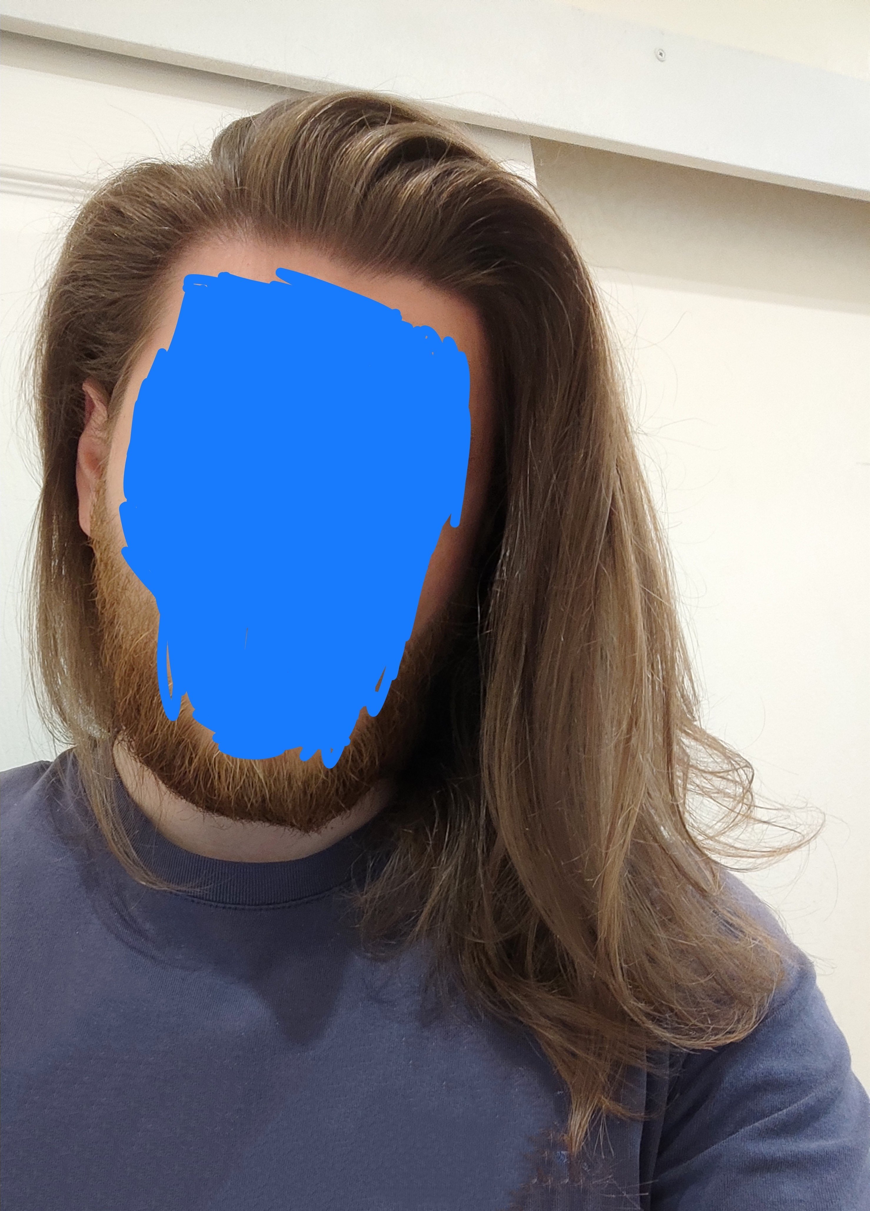 Sauf que j'en peux plus, je me trouvais + beau cheveux courts (les avis de mes proches divergent, certains préfèrent long, certains préfèrent court) mais je trouve que c'est trop d'inconvénients au final. Chiant à laver, chiant de faire un beau bun, la douche bouchée, avoir un élastique sur soi tout le temps, démêler, le fait de ressembler à rien détaché...