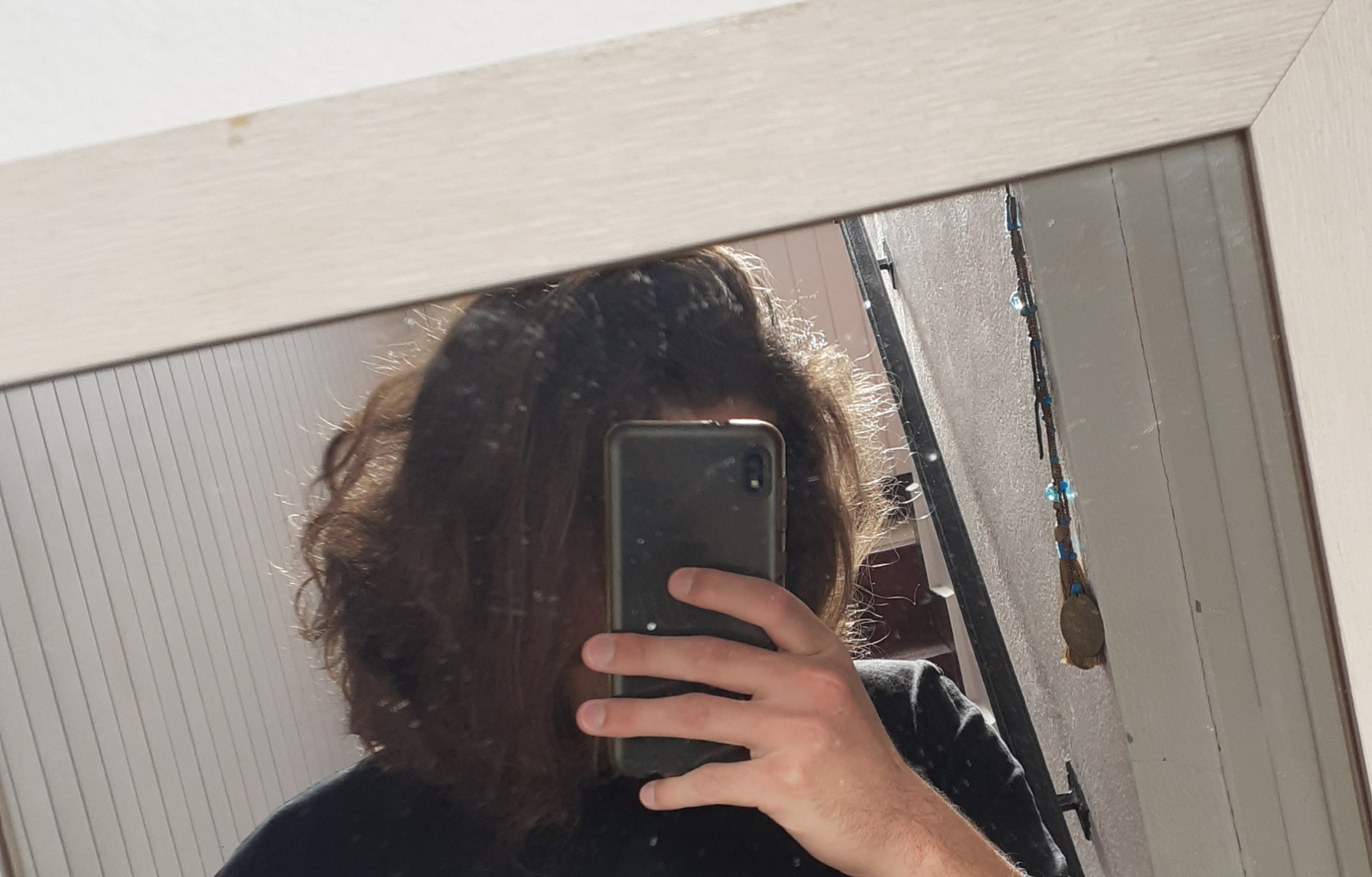 Ça fait depuis octobre 2020 que je me laisse pousser lzs cheveux, ça a été galère d'avoir une coupe de merde longtemps. J'ai eu juste un passage chez le coiffeur pour les pointes et desepassir (vous voyez la masse) mais faut vraiment que j'y retourne faire une vraie coupe et enlever de ka masse pcq je suis obligé de les laisser détachés sinon c'est moche et ingérable vu que j'ai les cheveux pas mal bouclés