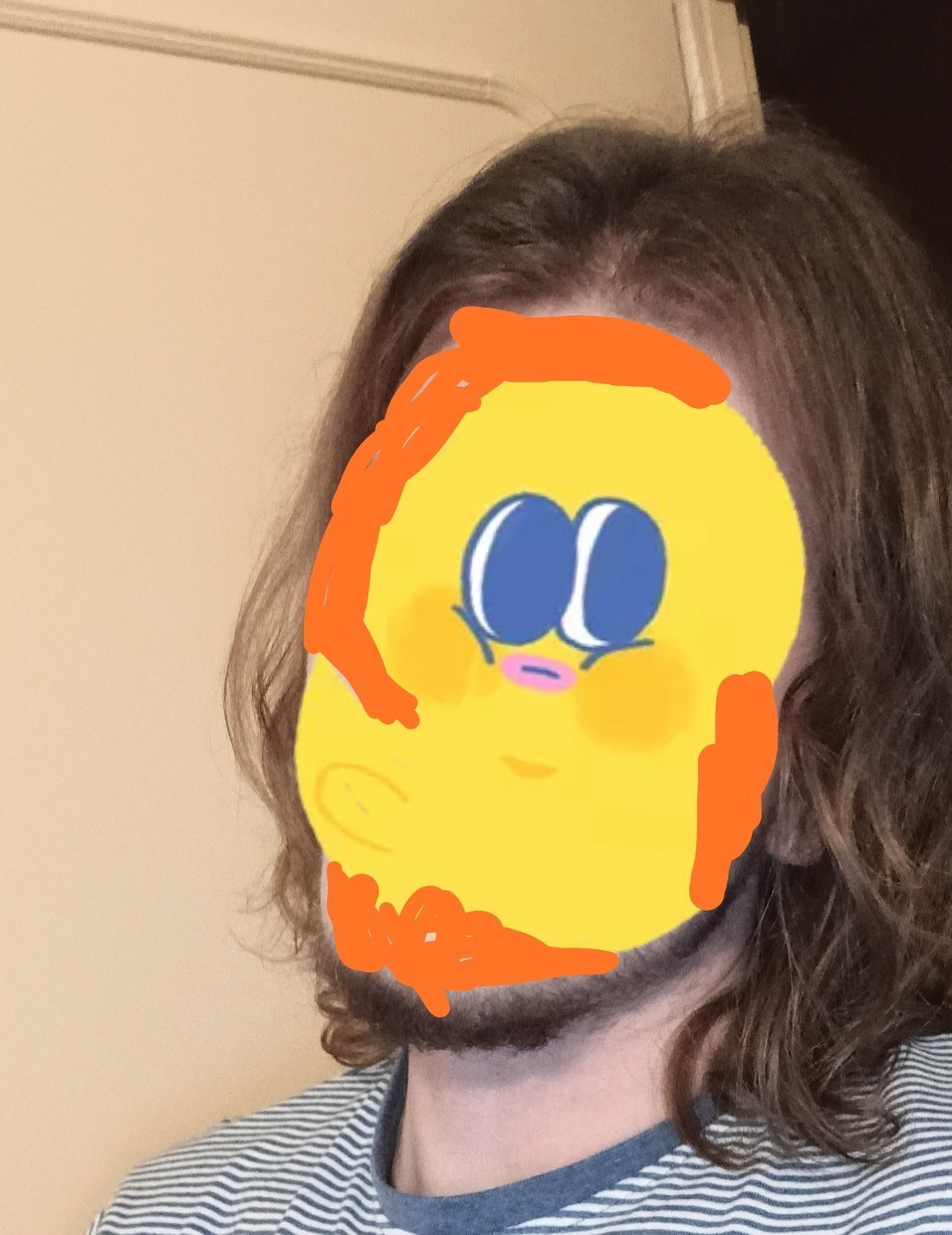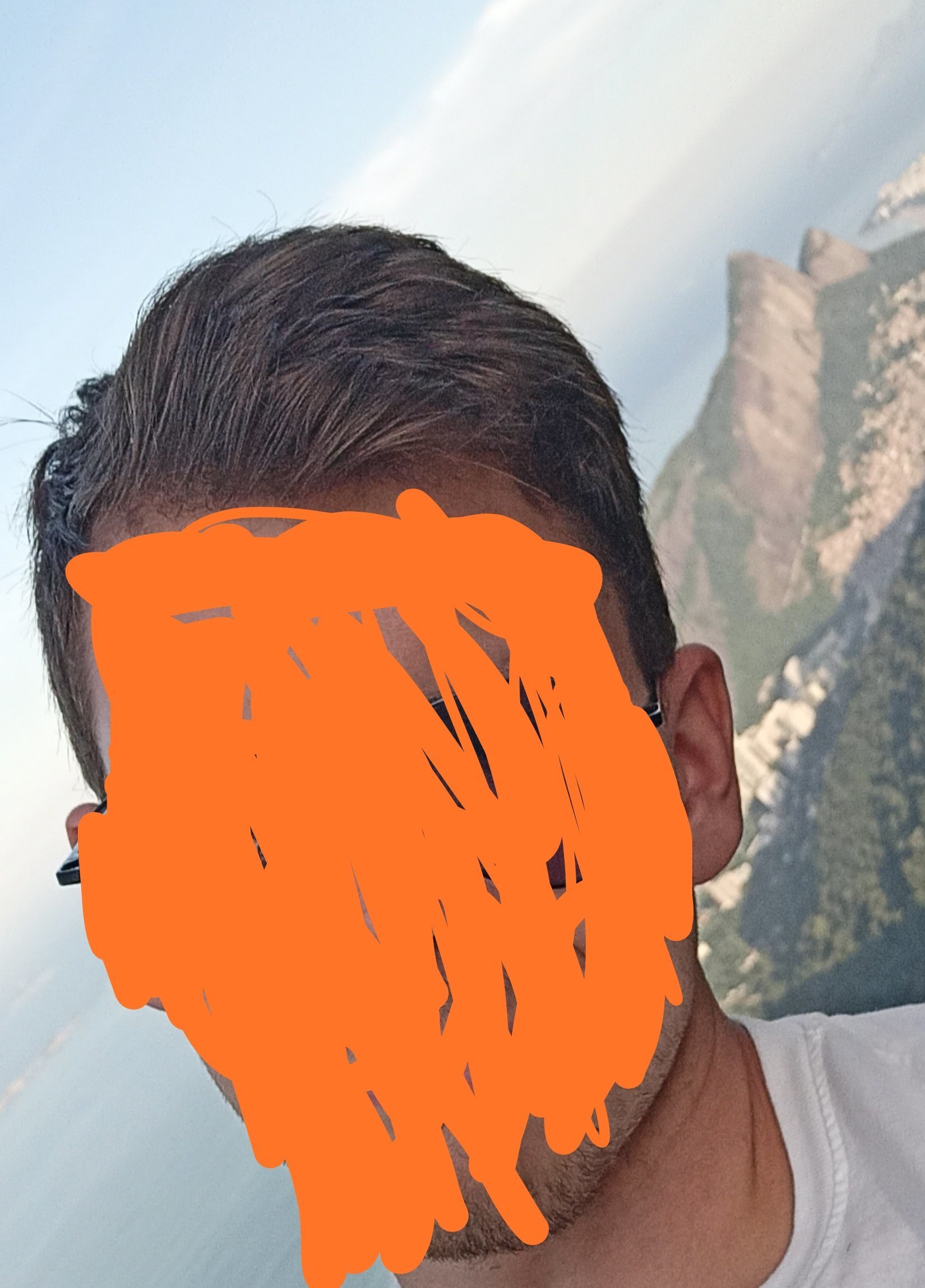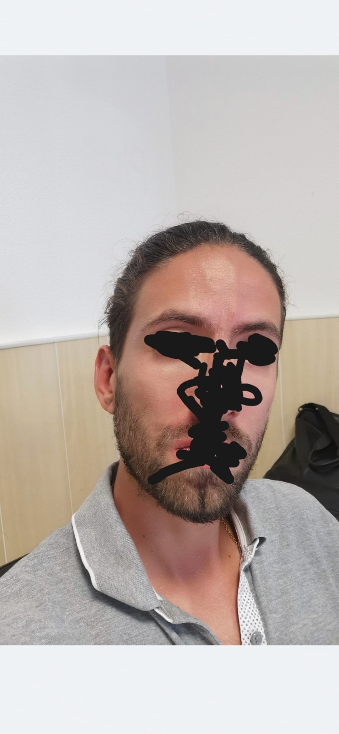 Ça fait 3 ans que j'ai les cheveux longs mais je les assume pas car bcp trop volumineux et ondulés c'est un enfer du coup je les attache tout les jours en Man bun donc de face j'ai cette tête :