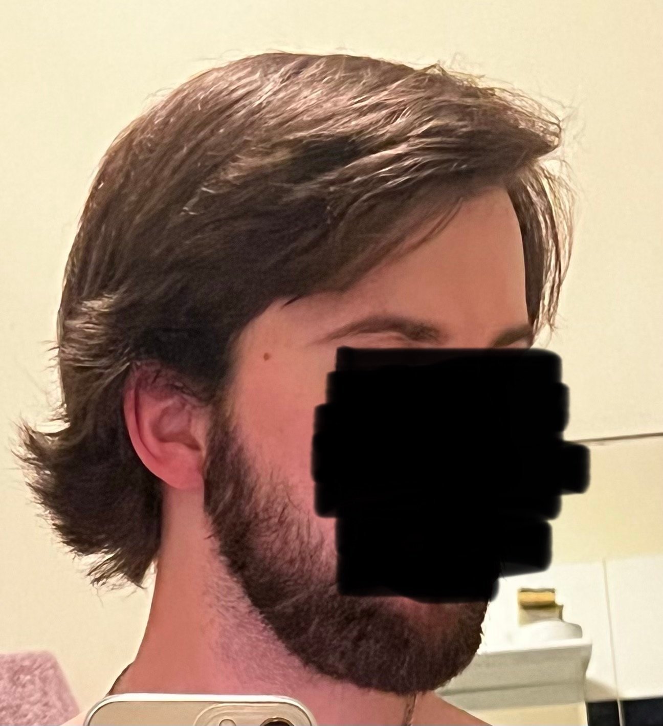 Hello les clés, je rejoins le train cheveux longsDernier passage chez le coiffeur il y'a 7 mois, je suis parti d'une coupe courte, depuis j'ai coupé deux trois fois sur les côtés, j'ai plus touché sinon. La phase casque commence