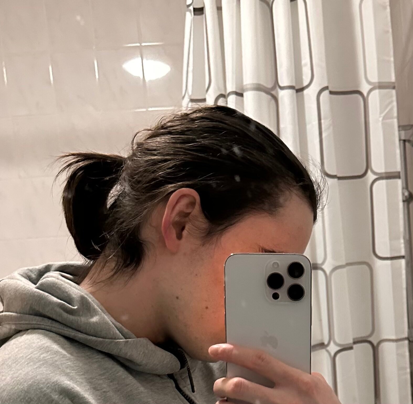 mes cheveux derrière m’arrivent aux épaules, devant ça m’arrive au menton