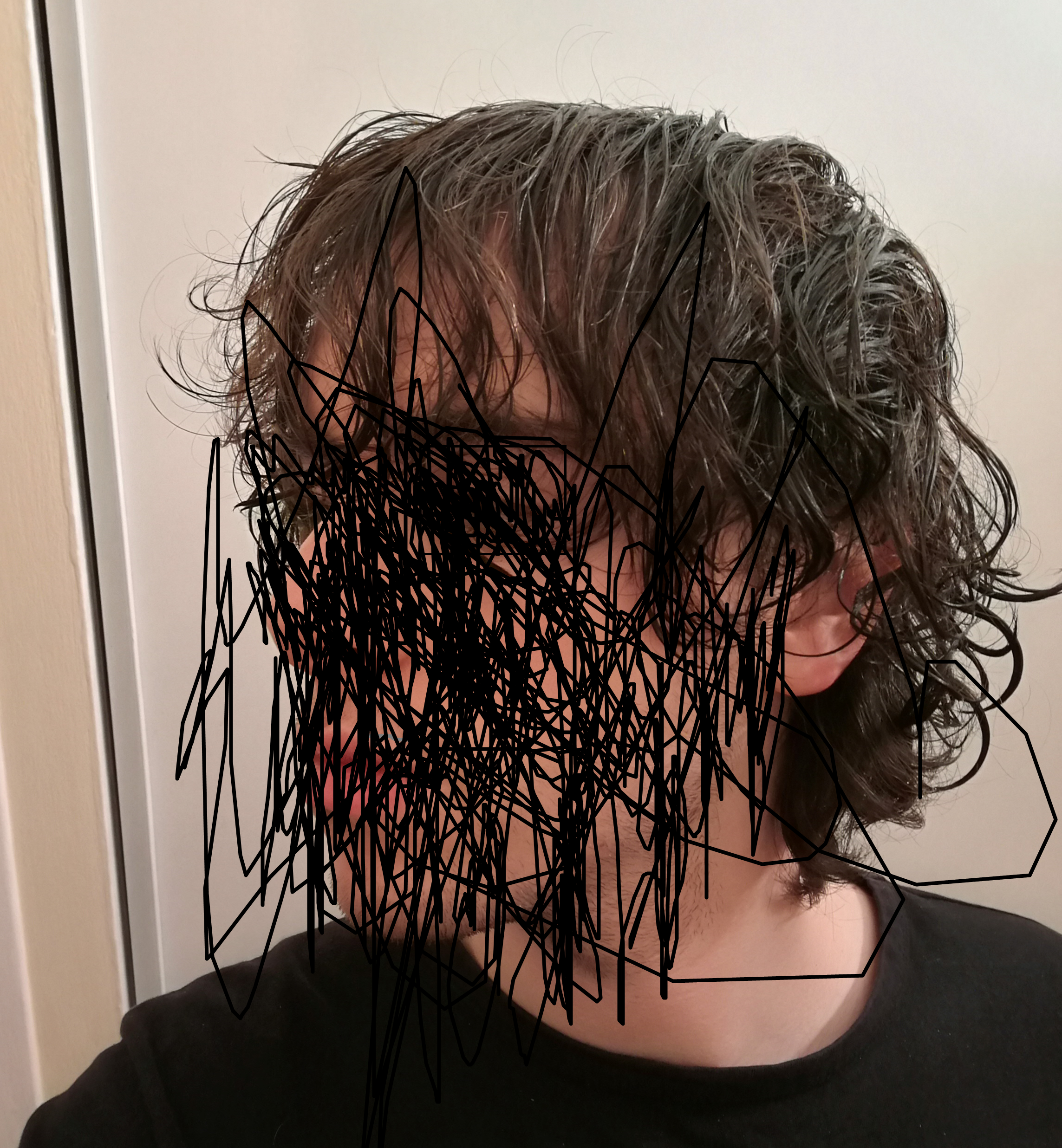 par exemple impossible de plaquer mes cheveux sur le devant sans qu'il ne soit mouillé.