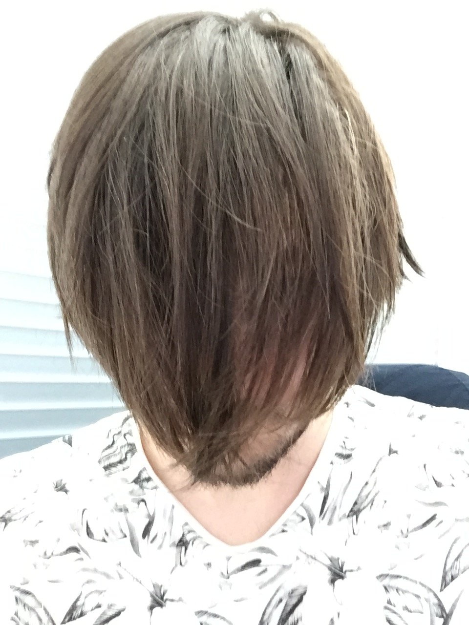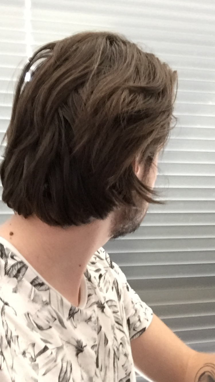Je tiens a préciser que j'ai fait dégager la nuque il y a quelques semaines, histoire d'éviter la coupe mulet et le temps que ceux des cotés rattrapent ceux de la nuque (je pars d'un undercut).