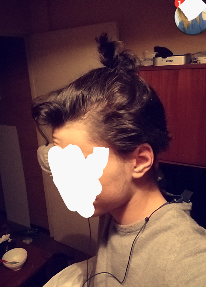 Comme j'avais tondu les cotés et laissé 5-6cm au dessus je me retrouve avec les cheveux assez long au dessus et court basic sur les cotés maintenant