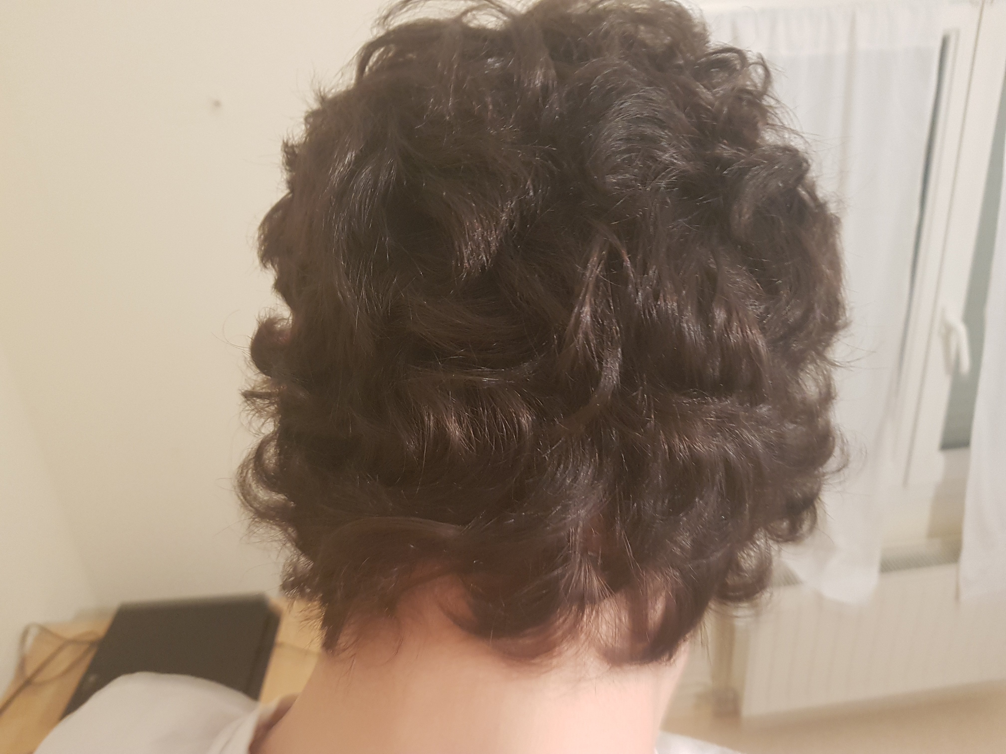 je suis à 4/5 mois ça me fait un petit casque des fois. Et avec les cheveux ondulés sur le dessus on pas l'impression que ça pousse.