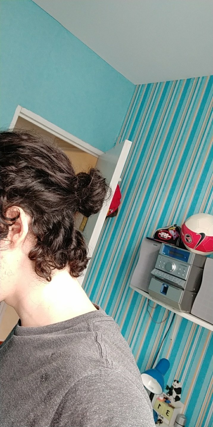j'ai pas encore été au coiffeur une seule fois mais ça devrait arriver pour harmoniser ce merdier et surtout pour couper un peu de longueur et pouvoir les attacher. Il manque encore quelques centimètres de pousse pour que le dessus puisse s'attacher sans retomber sur ma gueule de flan
