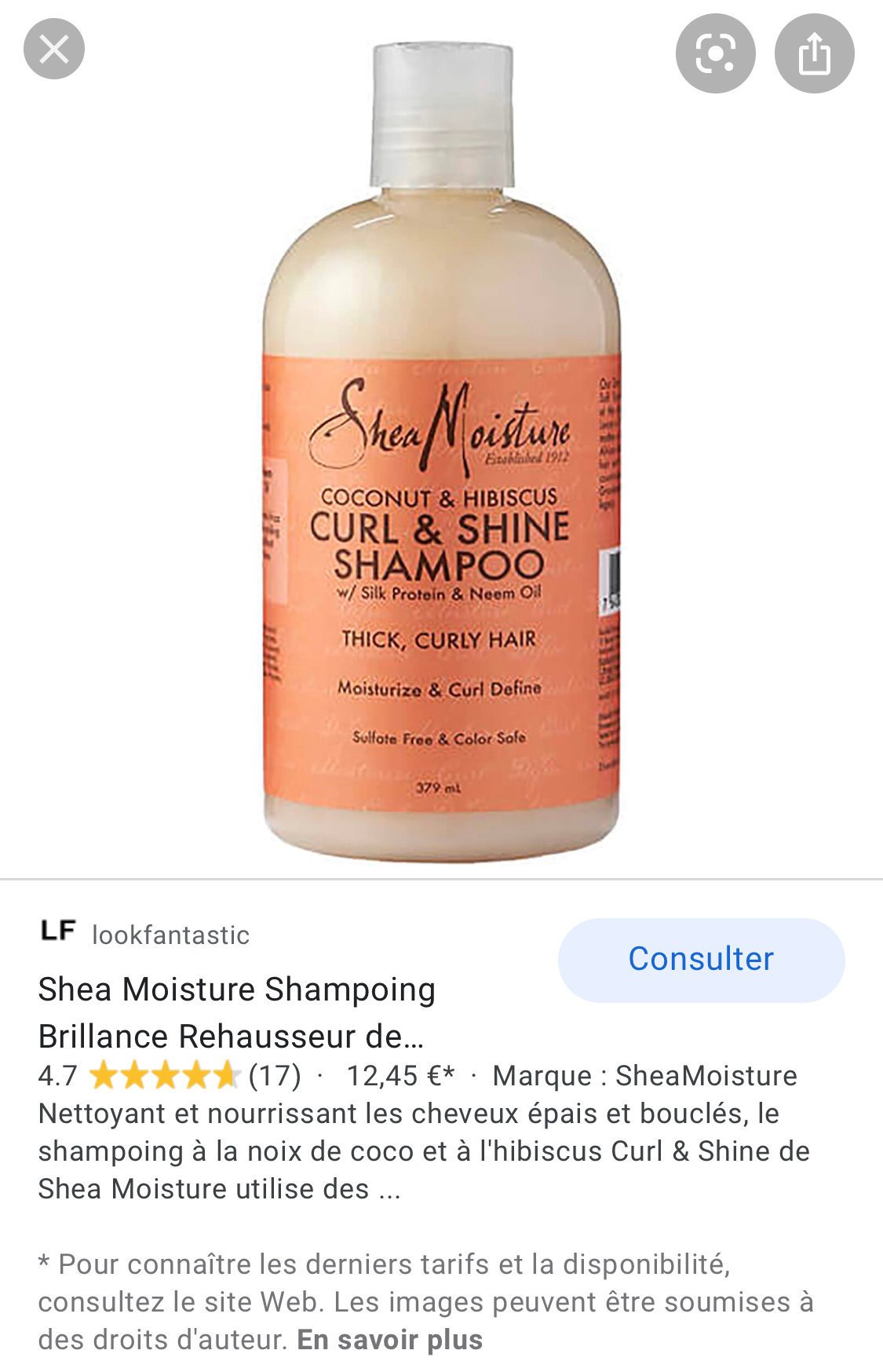 Au niveau de ma routine je me lave les cheveux seulement 1 fois par semaine (le dimanche), je les laves avec un shampooing Shea Moisture et j’applique un leave-in quand ils sont encore trempés puis je laisse sécher à l’air libre.