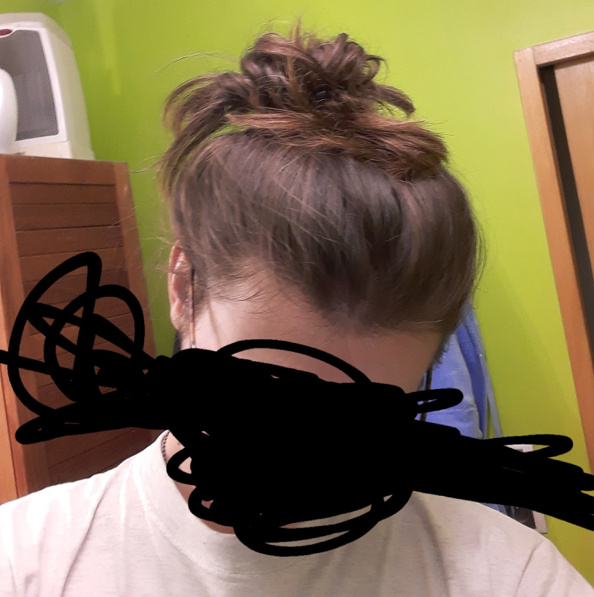 mais j'ai une question, quand je m'attache les cheveux j'ai un peu de cheveux plus courts qui rebiquent sur le dessus et le côté droit (sur le côté gauche quasi pas, je comprends pas pourquoi),no jugement j'ai attaché comme un gland à la va vite :