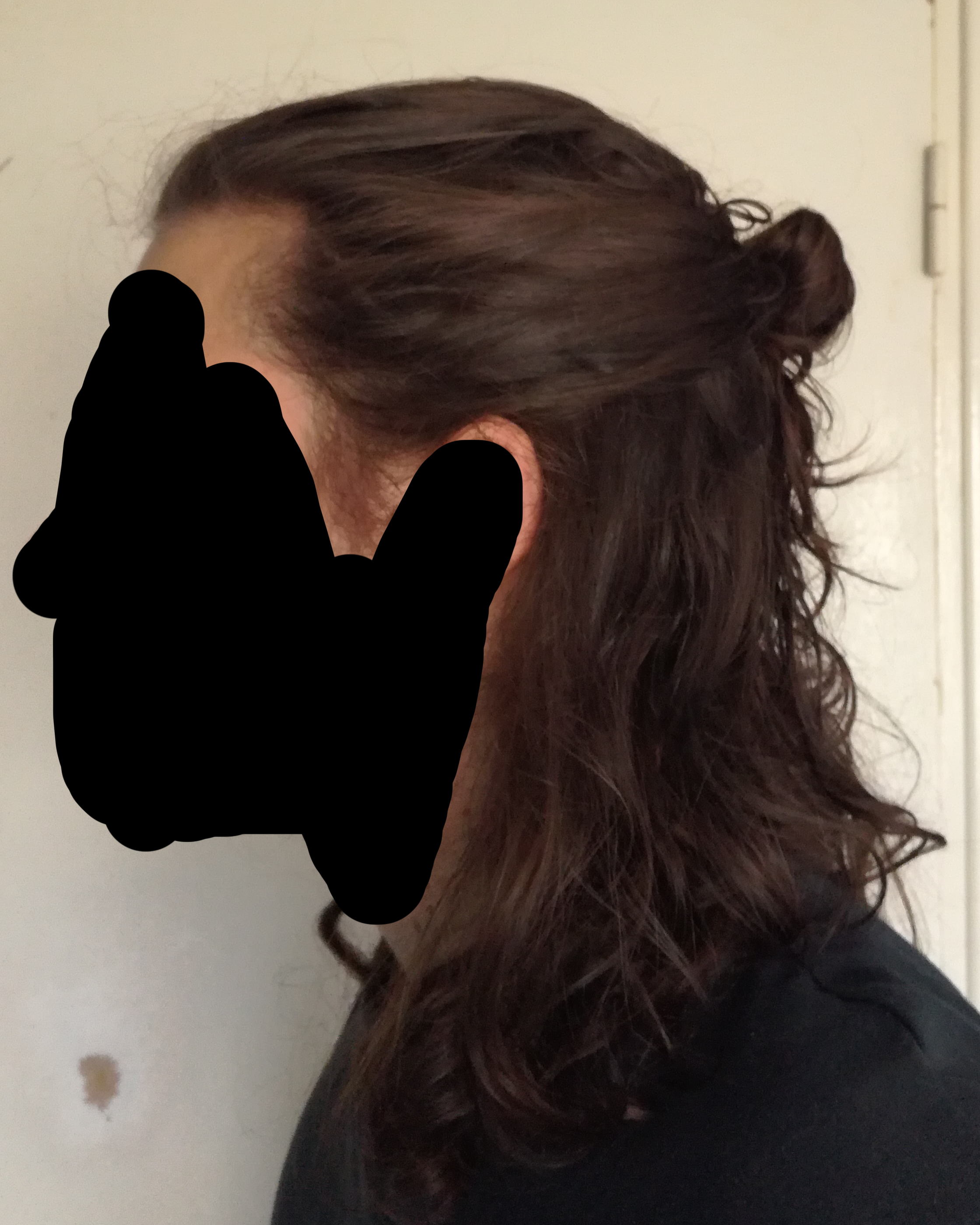 Mais bon, j'ai des cheveux de merde. J'ai déjà tenté plusieurs fois de les laisser pousser mais j'arrive toujours au stade où j'ai l'impression qu'ils ne poussent plus. Mes cheveux ne tombent pas sur les côtés ou en arrière du coup ça ne ressemble juste à rien quand ils sont longs. Le pire ça reste sur les côtés ou derrière la tête... J'ai pas encore trouvé de méthode pour les coiffer en arrière car, comme je le dis, j'ai des cheveux de merde.