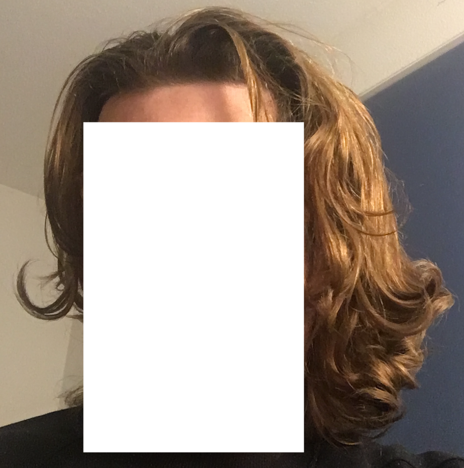 La calvitie est bien présente.. Sous cet angle avec les cheveux longs ça se voit pas.. Mais ça impacte considérablement les possibilité de coiffures