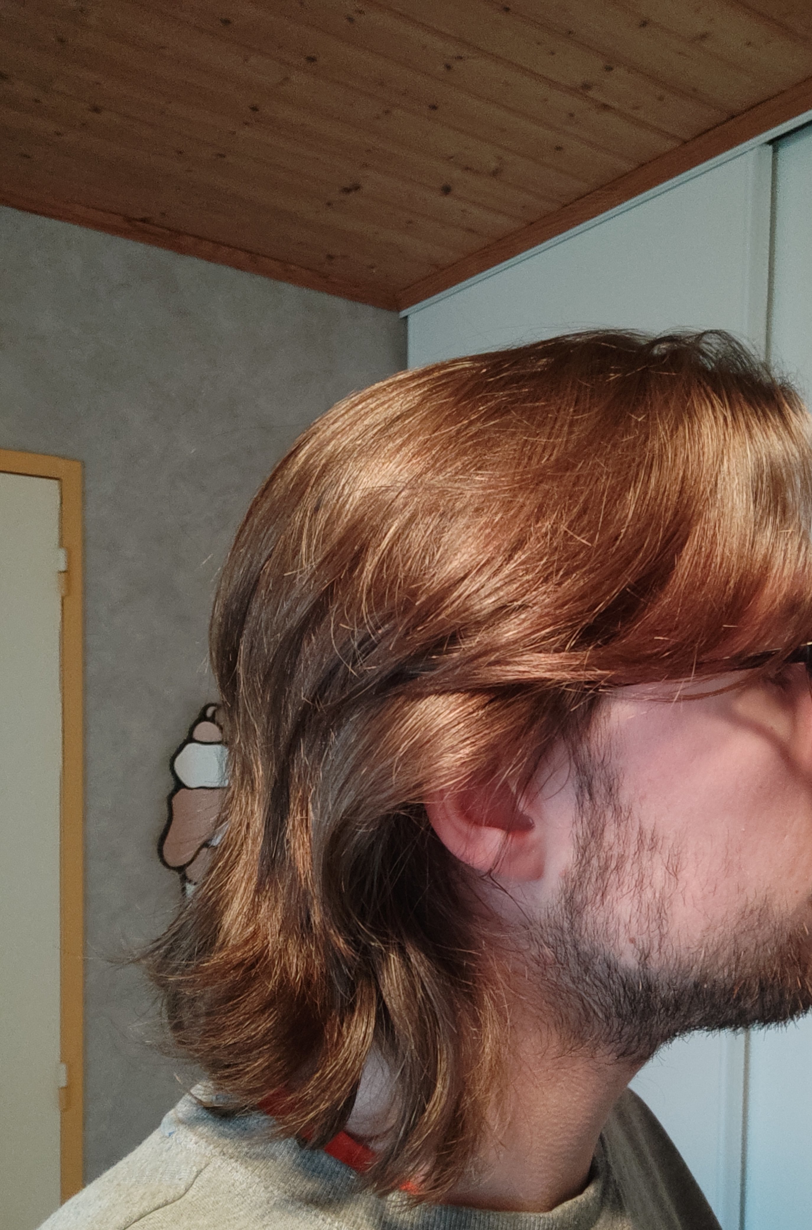 Sinon j'hésite à couper la nuque et les côtés parce que ça fait vraiment mulet, on me l'a déjà dit, sachant que le dessus pousse plus lentement à cause de la calvitie.. on dirait que j'ai six mois de pousse dessus sérieux