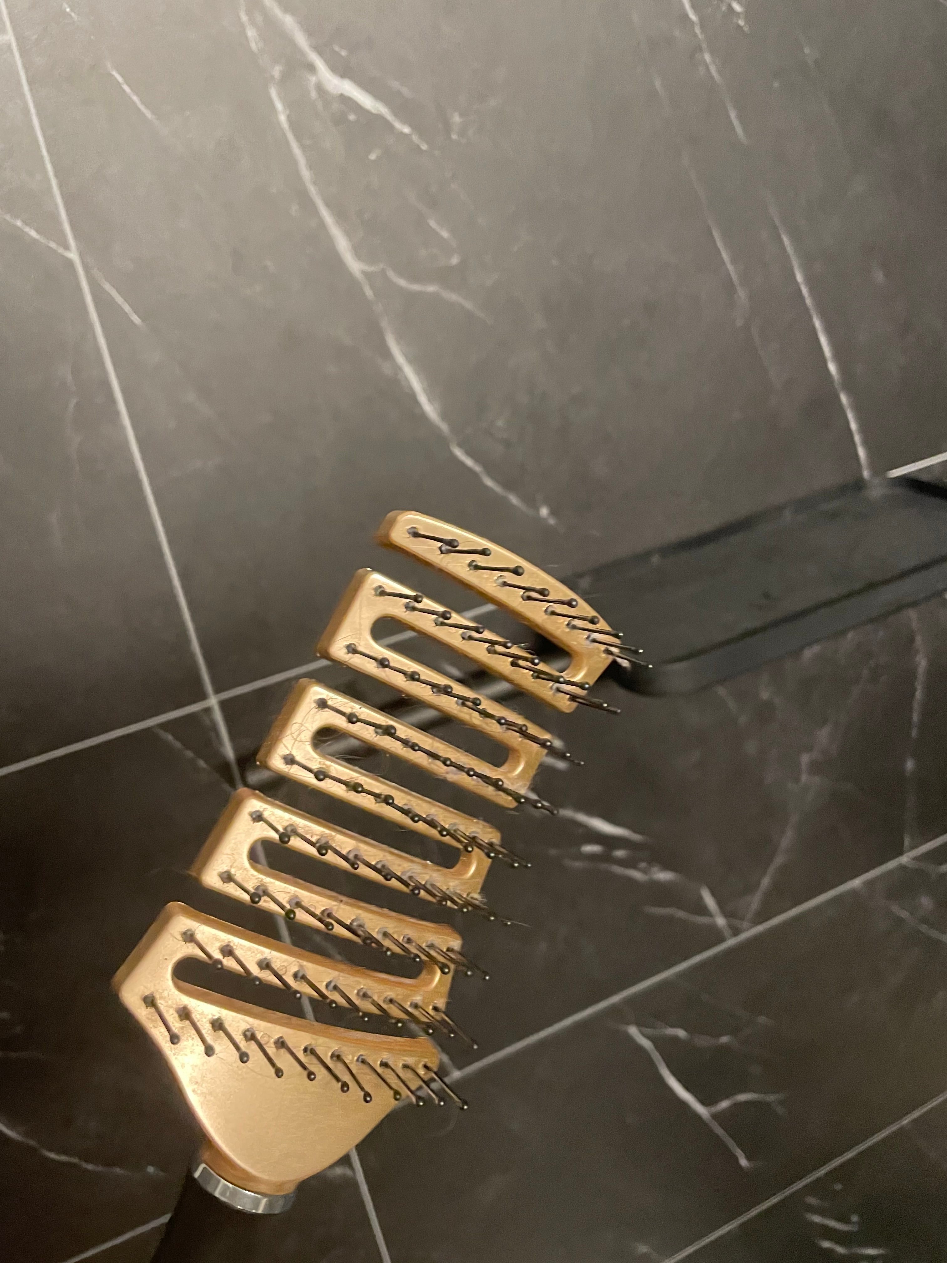 - tu démêles doucement avec une brosse (si possible adapté aux cheveux bouclés)
