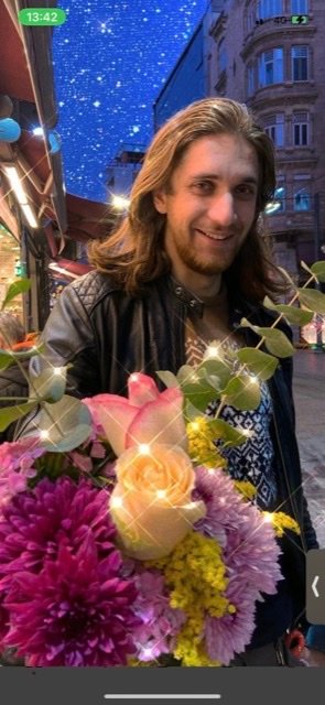 car il tombe toujours sur mes yeux ou comme la photo ou je tiens les fleurs