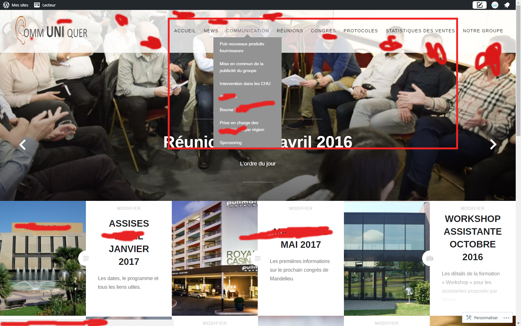 Avec les articles à la une affichés dans le bandeau et qui défilent, et tous les autres articles en carrés en dessous.